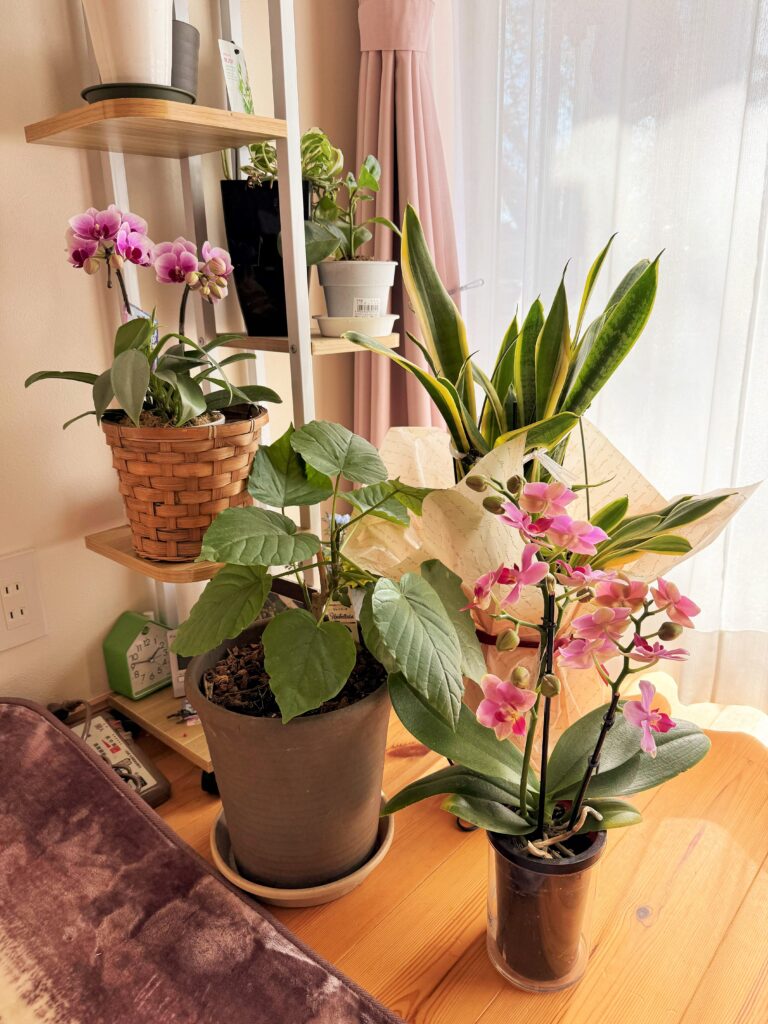 蘭の成長を見るのが楽しみで、気づけば少しずつ数も増えてきました(笑)