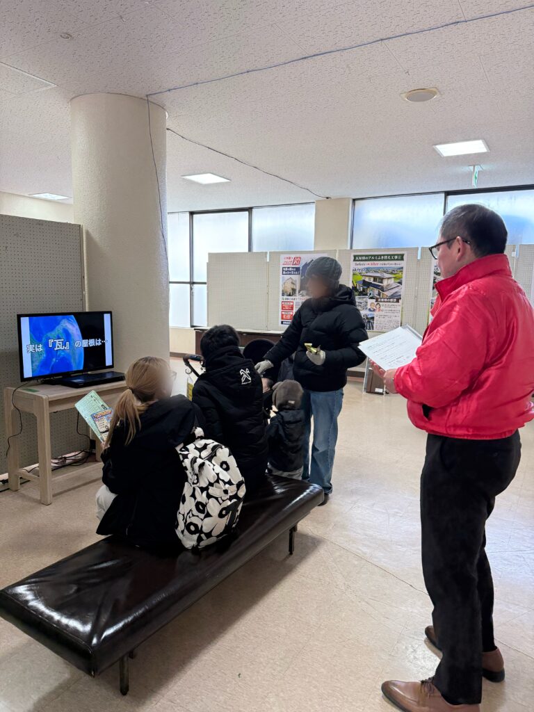 屋根の重さと地震の関係についての映像をご覧いただいている様子です✨
