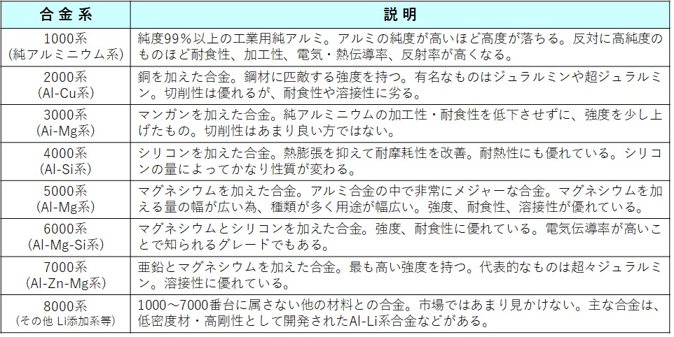 アルミ合金にはどんな種類があるの❓