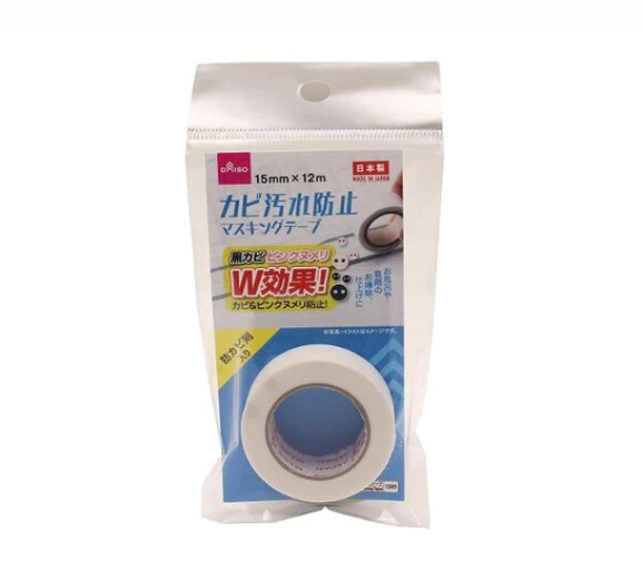 水回りのゴムパッキンやコーキング部分にダイソーにある『カビ汚れ防止マスキングテープ』を上から貼るだけで